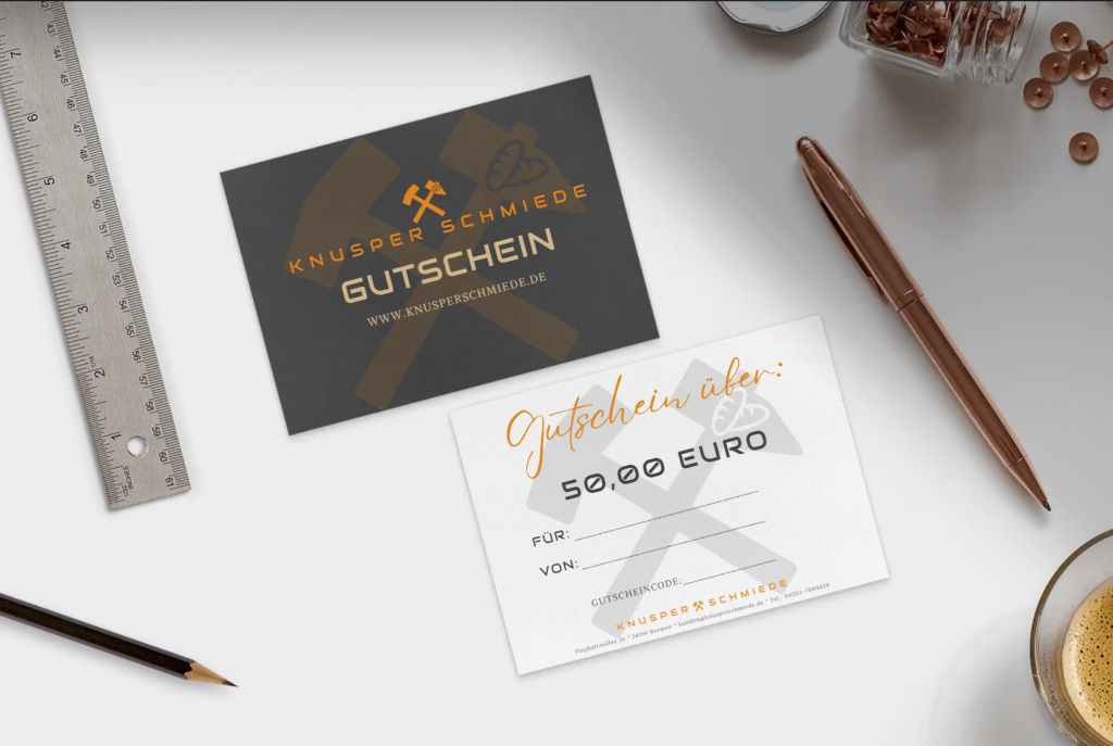 Ab sofort auch Gutscheine! Verschenken Sie kulinarische Freude mit unsere Knusperschmiede-Geschenkgutscheinen, ein Genuss für Backwarenliebhaber. Der Gutschein wird bequem per Post verschickt. Vor dem Verschenken prüfen Sie bitte die Lieferverfügbarkeit im Wohngebiet des Beschenkten. Wir helfen Ihnen gerne dabei, online oder telefonisch.